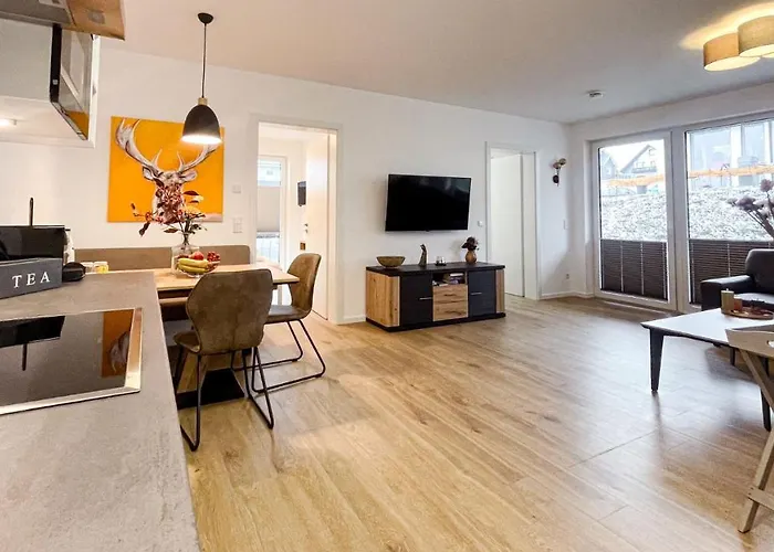 Een perfect verblijf is gegarandeerd met dit appartement van 94 m^2, gelegen in de Ortsmitte wijk van de stad, binnen 25 minuten wandelen van Skilift Brembergkopf l. Dit 0-slaapkamer appartement is binnen 10 minuten met de auto van de Bobsleebaan Winterberg gelegen. Gebirgsresort - Ferienwohnung 2 0 2 bevindt zich op loopafstand van de Skilift van Winterberg.